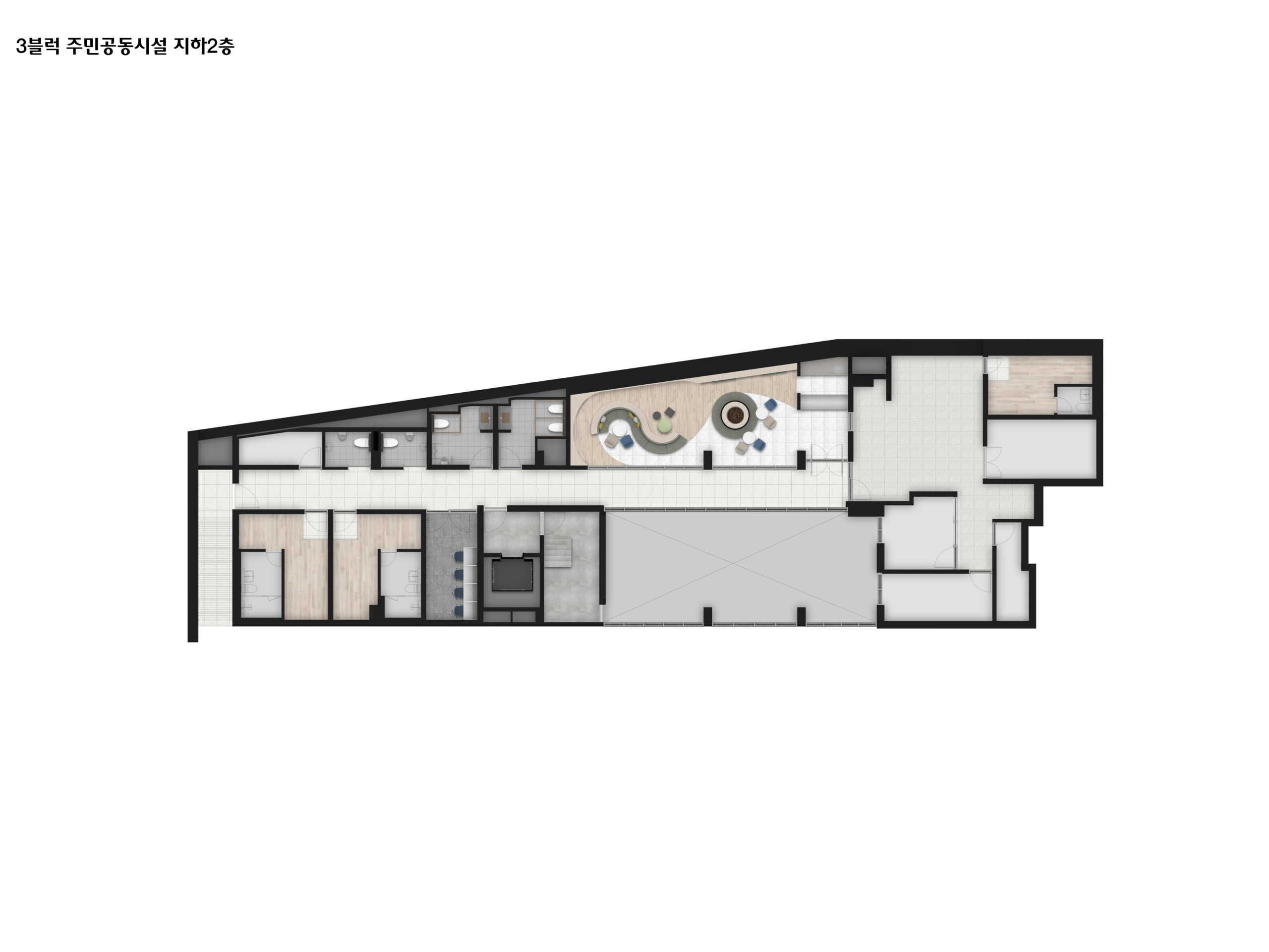 ❶ 피트니스 ❷ 골프연습장 ❸ 탈의실, 샤워실(남/여) ❹ 북카페 ❺ 스터디룸